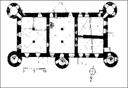 Namentlich die dicken Türme verleihen ihm etwas Festungsartiges. Das Äußere der